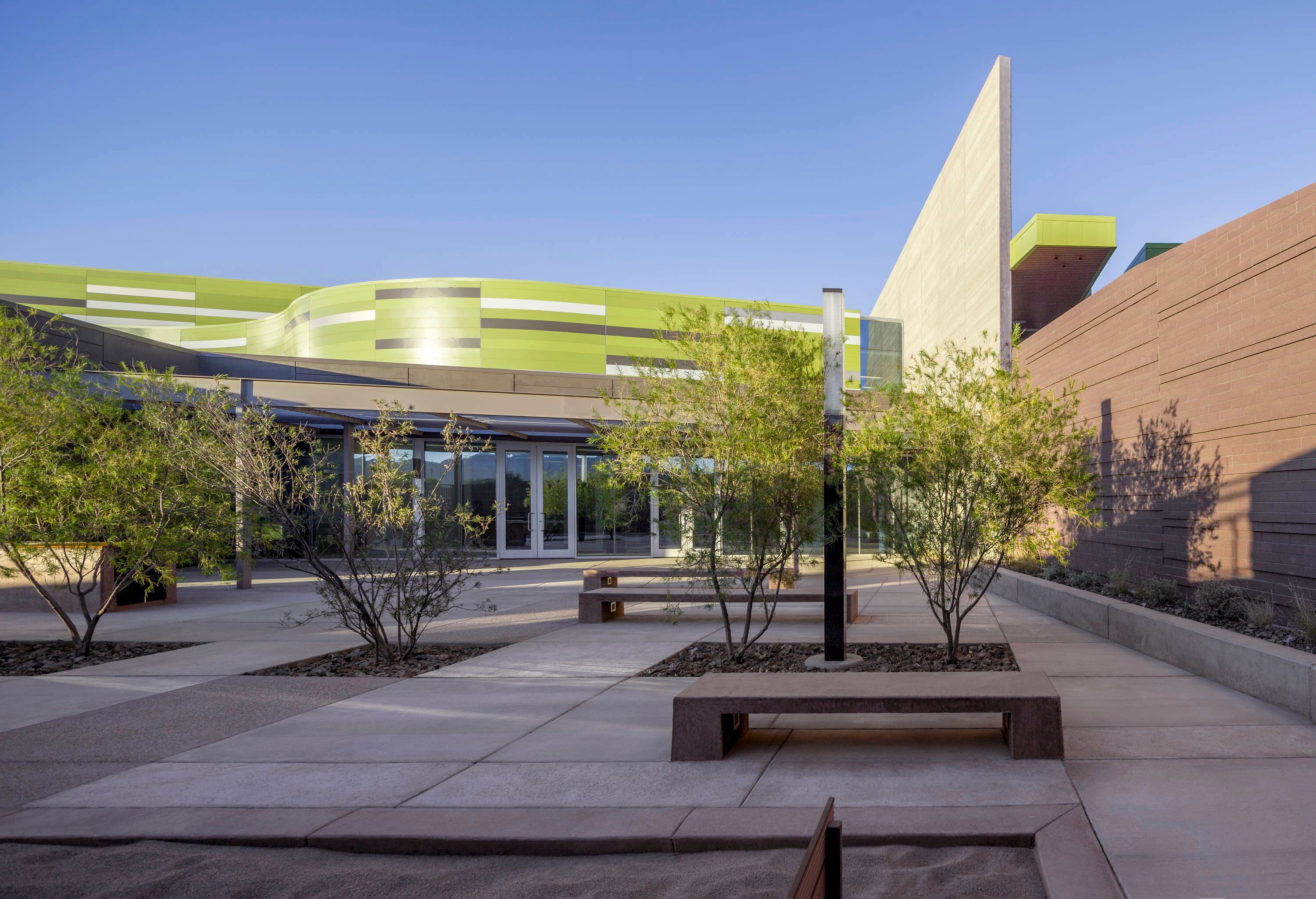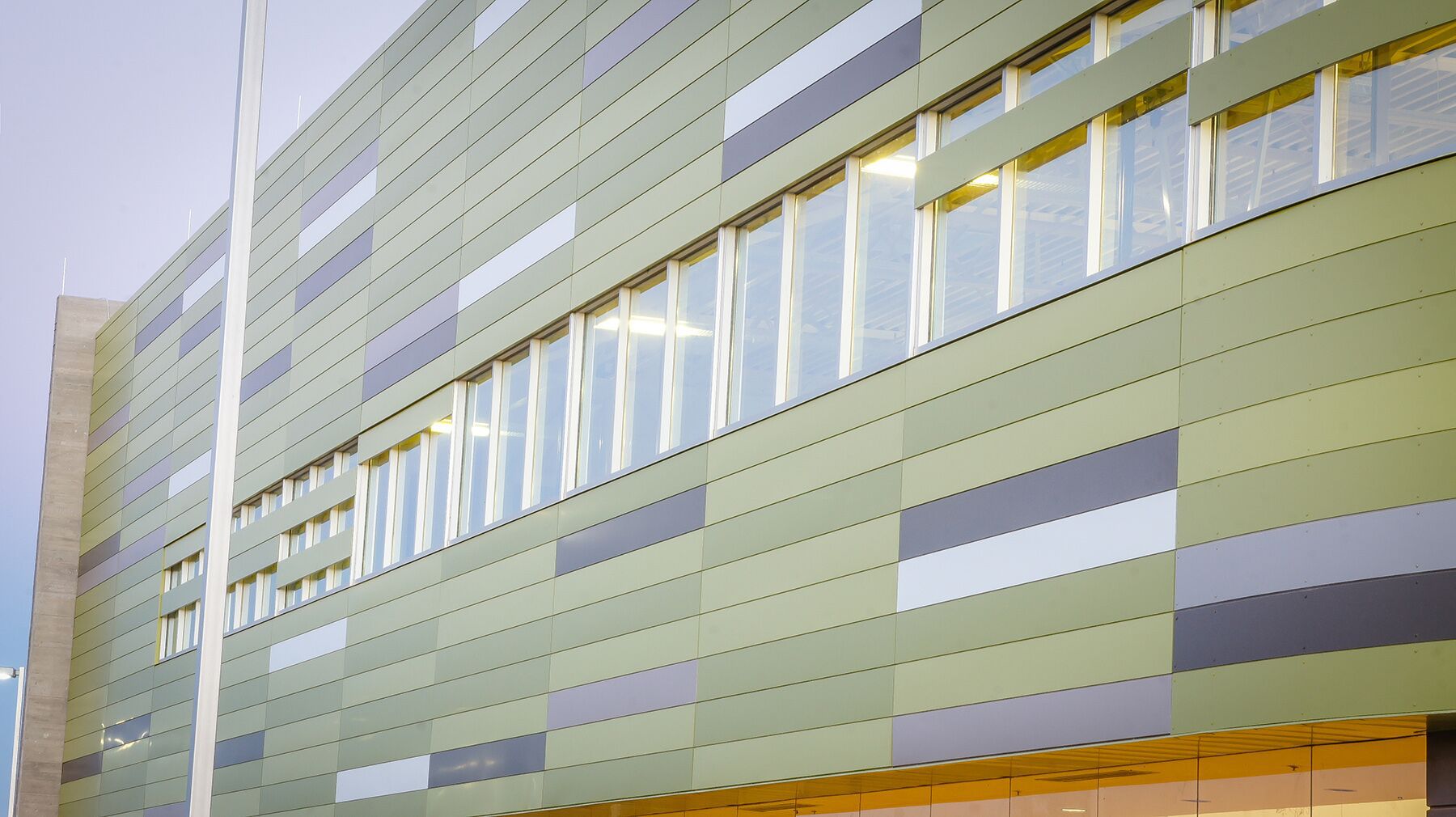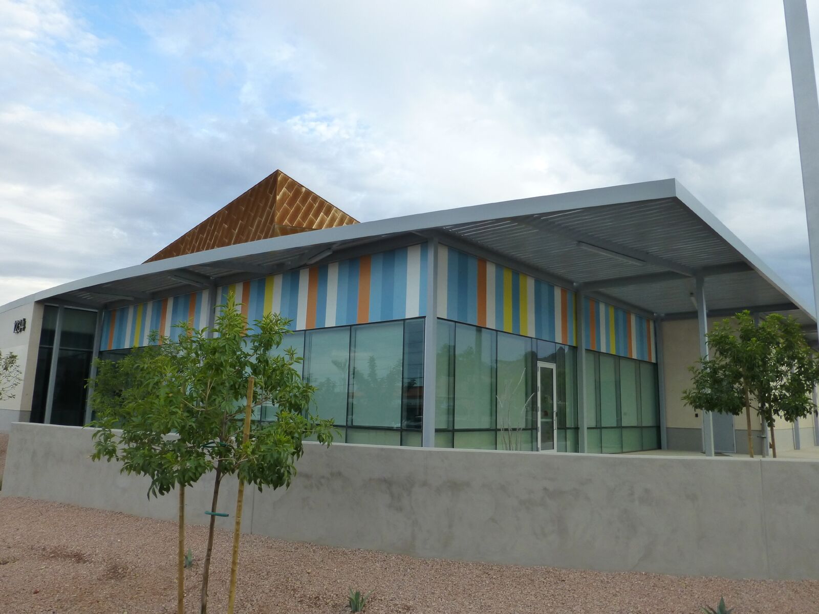 The Gila River Multipurpose Building showcases OCM’s flexibility and unlimited color options. OCM produced multiple shades of green and grey which were utilized in the vibrant custom metal panel system. The result is a building facade which curves and wraps around this exciting building which hosts cultural and educational activities in the Gila River Indian Community.