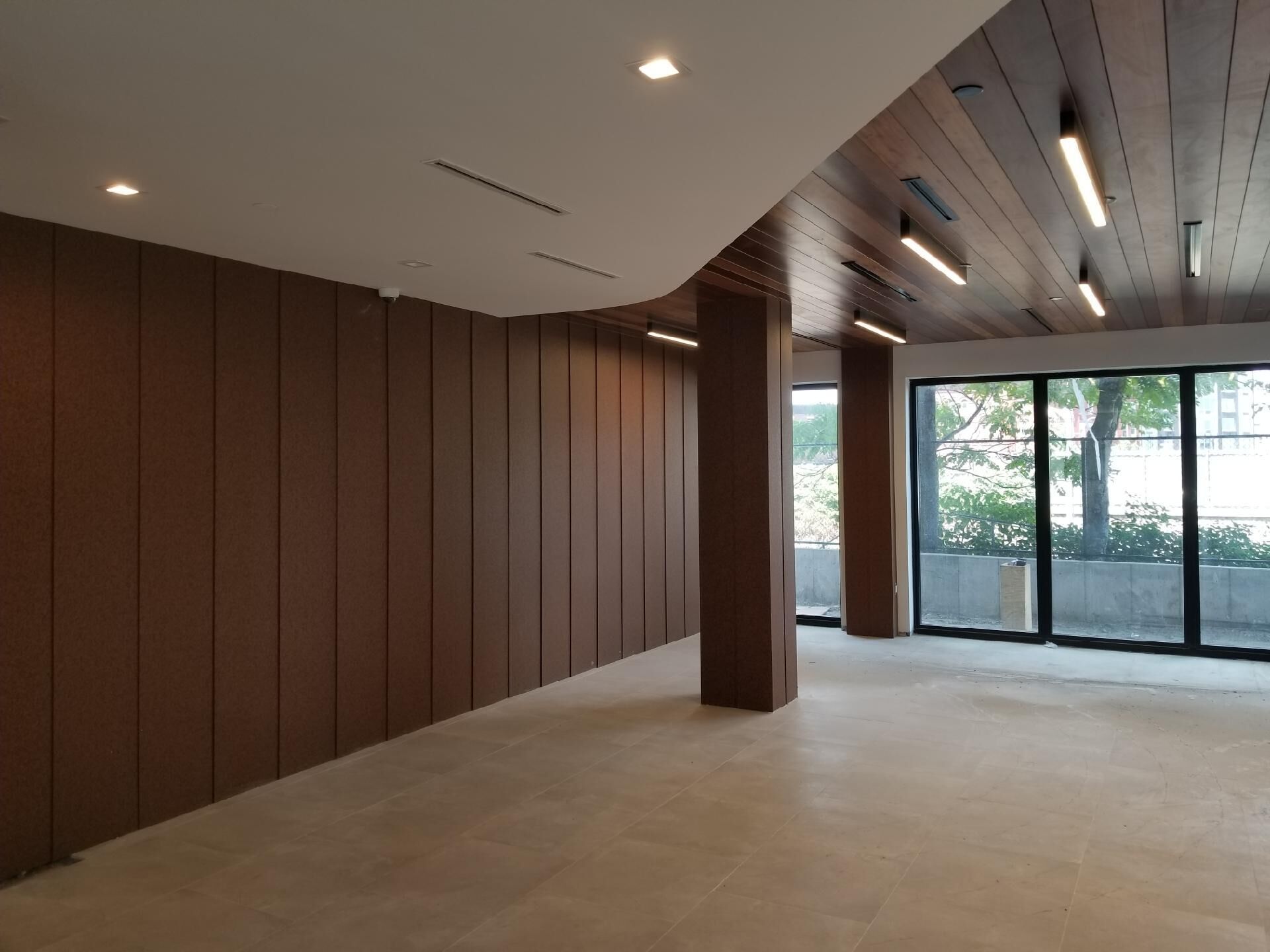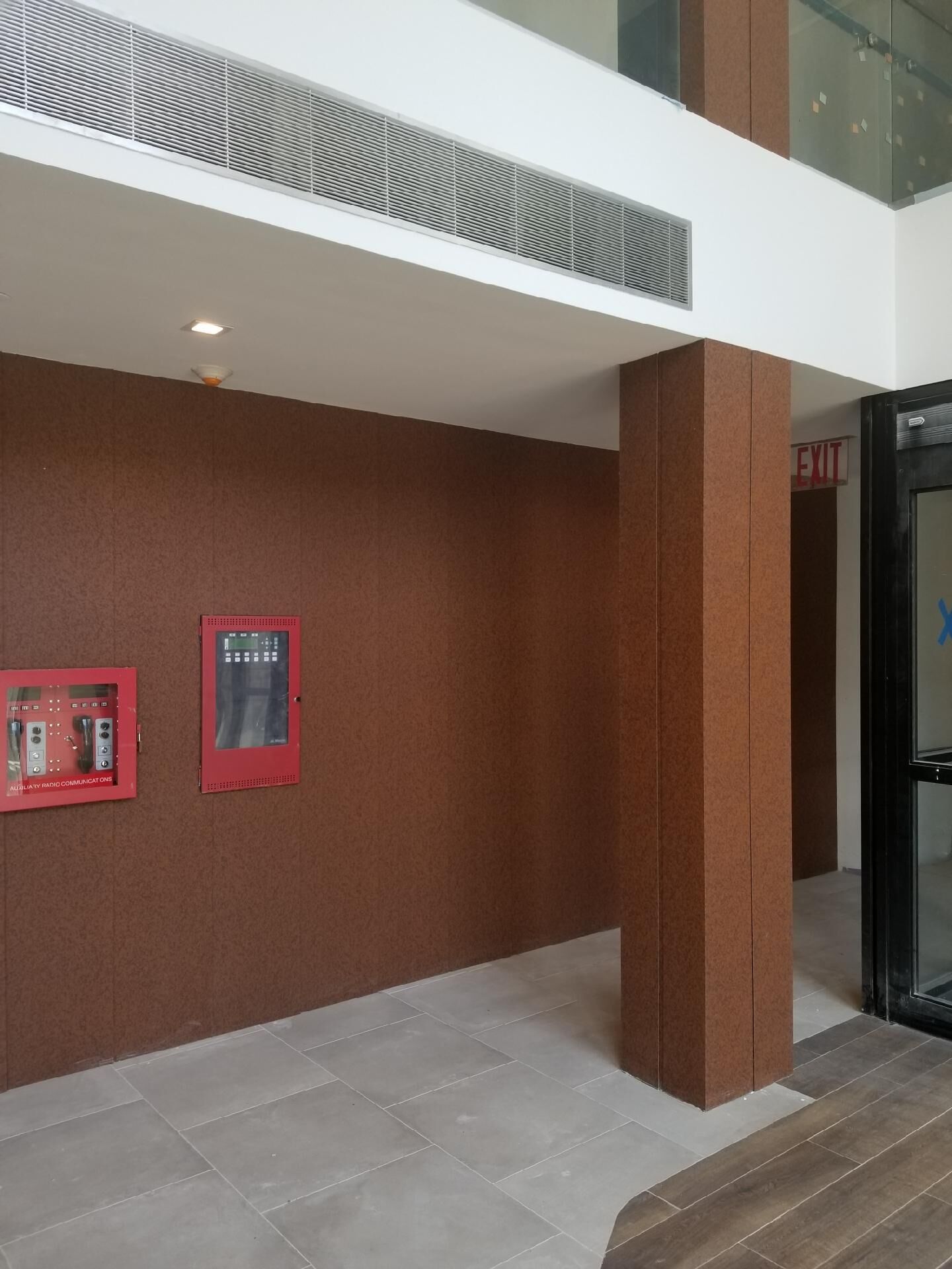 The fabulous Moxy Hotel in New York City is a unique standing structure in the city skyline. Our K5 coil accents the exterior at the penthouse levels. Pre-painted aluminum sheet was used to sleeve a heavier metal.