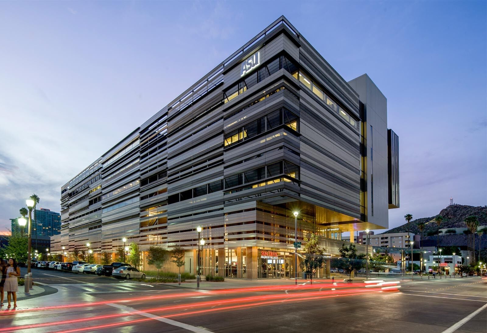 The Del E. Webb School of Construction, or DEWSC is one of the finest construction schools in the country. So its fitting that the contracted one of the finest fabricators to use OCM Coil on this prestigious learning center. OCM painted 4 custom metallic colors used for metal wall panels and screen walls, fabricated by Kovach.