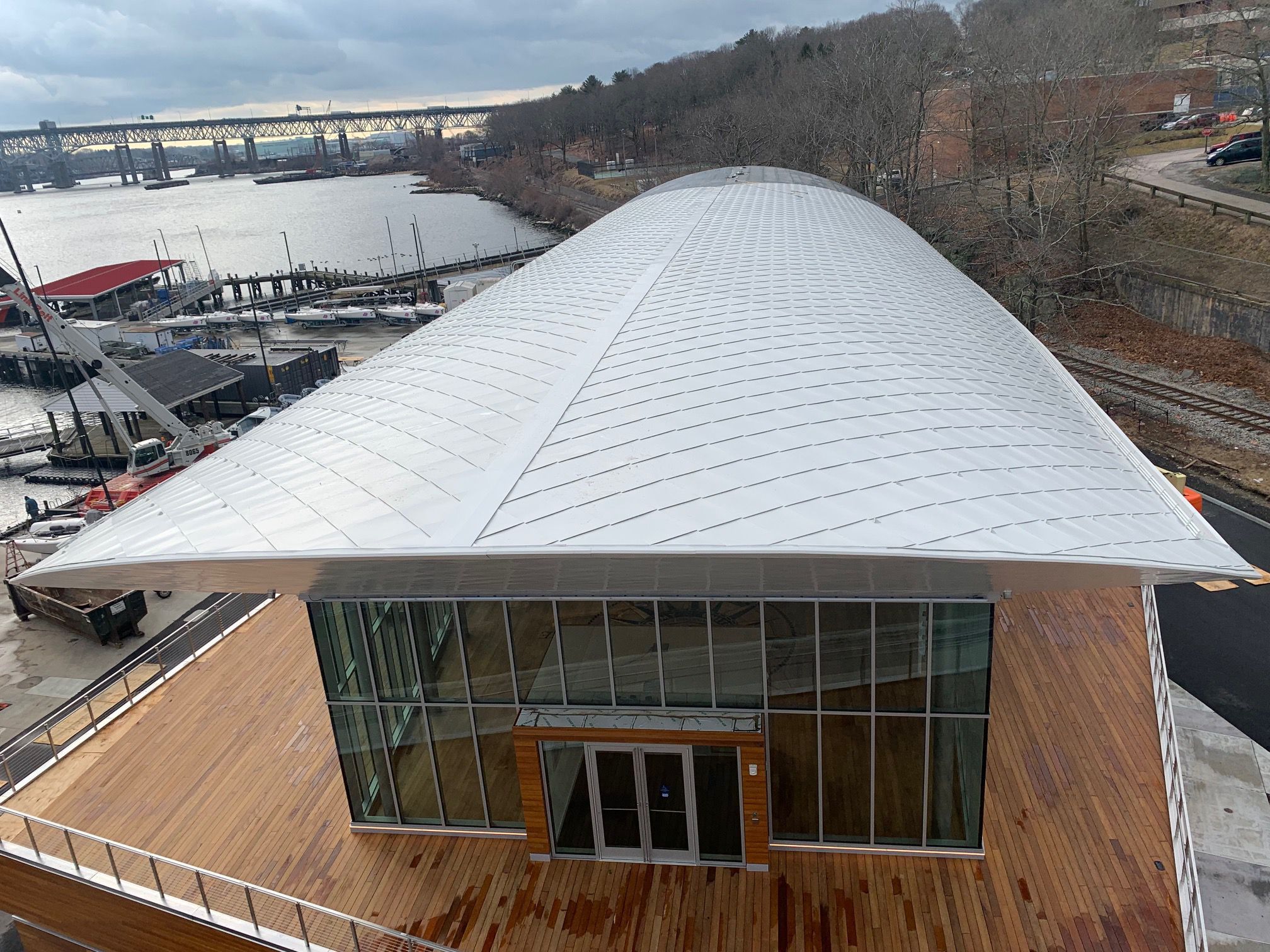 Metal-Tech Global applied OCM Coil to the construction of the Maritime Center of Excellence in New London, CT, creating roof tiles specialized to withstand rust and corrosion from the eastern coastline. OCM applied custom colored PVDF with High-Build Primer to stainless steel coil to provide the materials for this incredible US Coast Guard Academy.