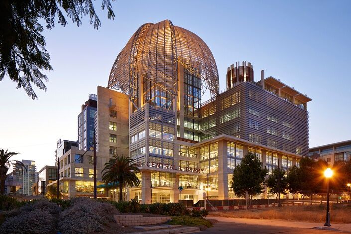 In a joint venture between Rob Wellington Quigley Architects and Tucker Sadler Noble Castro Architects, California Sheet Metal used OCM Custom silver materials to construct the fantastic San Diego Central Library. CSM perforated the sheets to create the icon lattice dome and façade of the structure.