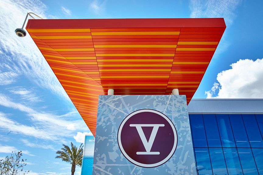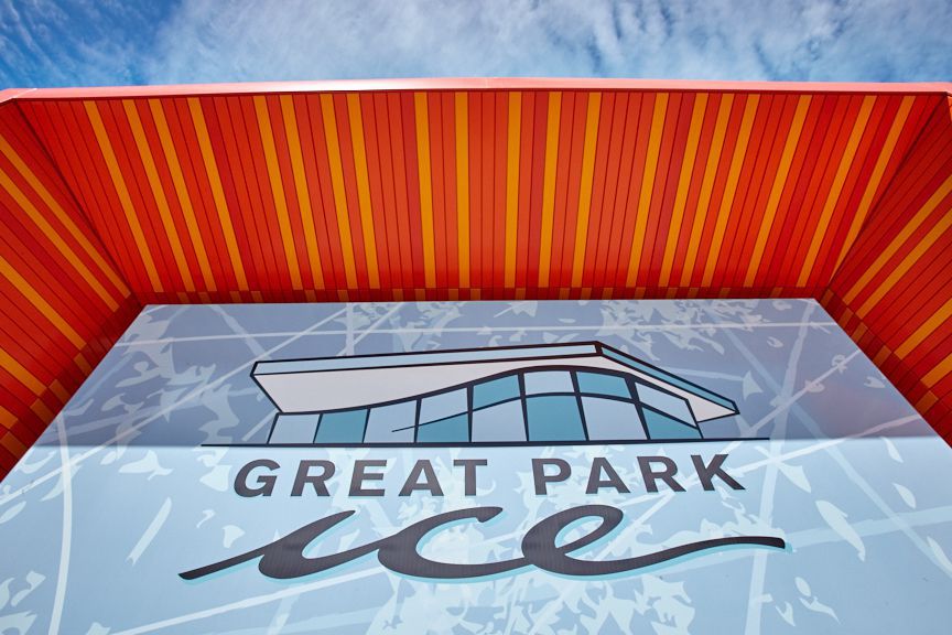 O.C. Metals contracted OCM Coil to paint the exotic custom colors seen at the Great Park Ice & Five Points Arena in Irvine, CA. We provided the bright pinks and orange materials for OC Metals to craft into sidewall, soffit, and fascia panels. The next time these colorful, eye-catching canopies enter your field of vision on your way for a fun day on the ice with friends and family, you have Old Country Millwork and OC Metals to thank.